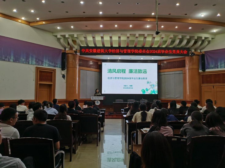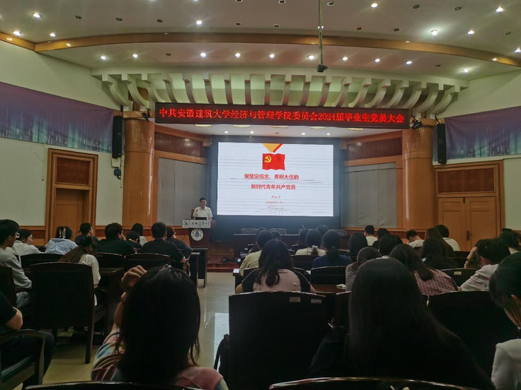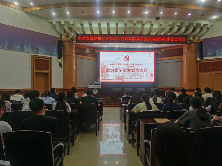 本网讯 为进一步加强毕业生党员教育和管理,激励毕业生党员发挥好先锋模范作用,近日,经管学院党委在建树楼三楼报告厅召开2024届毕业生党员大会暨“最后一次党课”主题党日活动,学院党委书记陈国中、党委副书记帅英、党委组织员高德龙担任主讲,2024届全体毕业生党员参加活动。