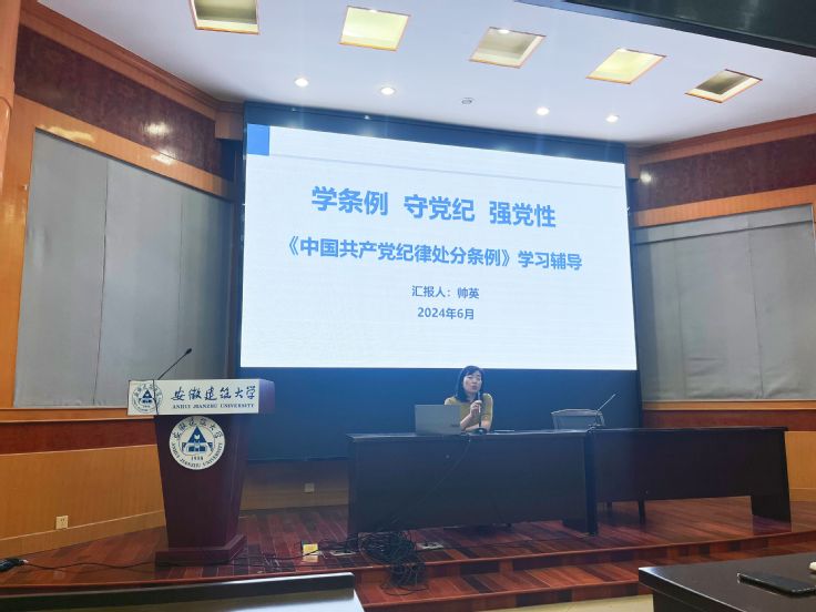 帅英以《学条例 守党纪 强党性》为题,从党的规矩是什么、党的纪律有哪些及准确把握《条例》的主要内容三个方面进行了阐述和讲解,通过结合典型的警示案例,深入浅出地阐释了《条例》所蕴含的核心要义、基本精神和丰富实践要求,为全体师生党员准确领会和贯彻落实《条例》提供了有益指导。