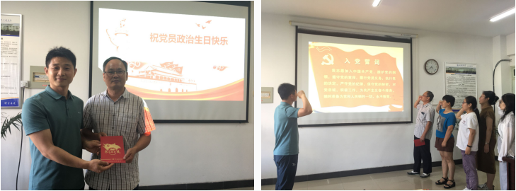 王媛和刘洋在“政治生日”环节中,共同为上半年入党的教师颁发了政治生日的“专属贺卡”,这既是祝福,更是鼓励,提醒党员们时刻牢记党员身份,谨记党的宗旨和使命,不忘初心、继续前行。