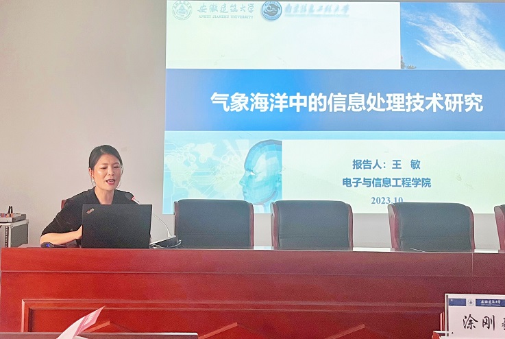 王敏教授详细地讲述了“气象海洋中的信息处理技术”。王教授分别介绍了气象海洋要素探测、气象海洋信息处理和迁移深度学习地基云分类等技术在气象海洋中的应用。
