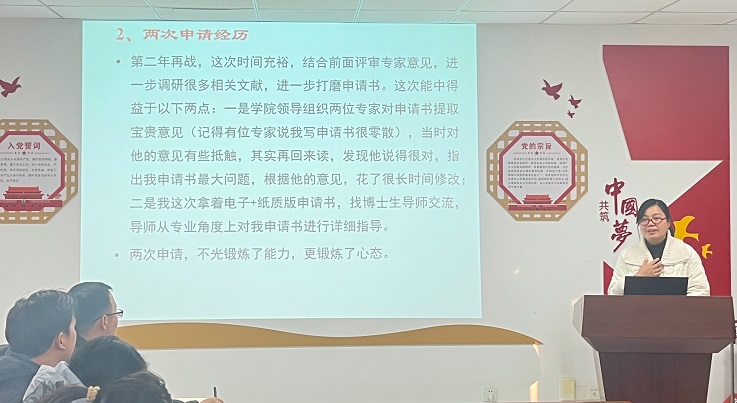 本次分享会,凝聚了青年博士投身科研工作的思想共识,增强了他们潜心科研、申报国家自然科学基金的信心,促进了学院科研工作的发展。(文/图:朱培灵 吴恒君 范雅琴 审稿:孙长城)