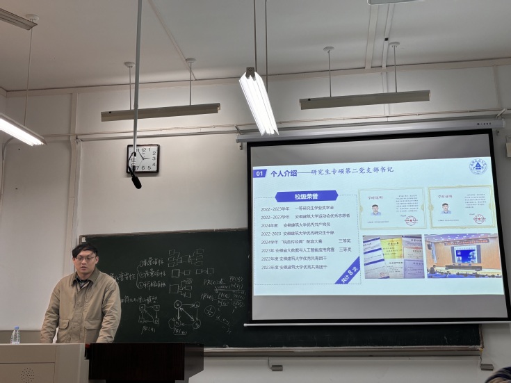 22级模式识别与智能系统专业团支书王飞龙同学和曾获2024年安徽省“研究生学术创新之星”的王鹏林同学进行科研成果专题经验分享。王飞龙同学曾荣获全国人工智能竞赛国家级一等奖,且以第一作者在国际知名期刊上发表多篇学术论文,他从如何选题、论文检索工具、文献查找、资料阅读以及研究生规划等方面进行了分享。王鹏林同学曾以第一作者发表SCI论文,他为新生分享了虚拟现实与智能交互系统、三维重建和智能数字人等科研成果。