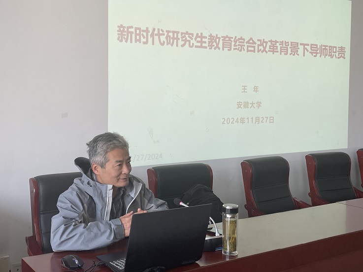 王年教授作了题为“新时代研究生教育综合改革背景下导师职责”的报告,主要讲解研究生教育改革中需要处理好八大关系、《研究生导师指导行为准则》和培养合格研究生的导师职责等方面的内容。王教授聚焦于国家研究生教育综合改革的政策法规,解读了如何应对新时代研究生教育改革发展的需要,凸显出研究生教育要与时俱进的理念,强调要注意教育质量提升,要重视对高质量人才的培养,深入分析培养合格研究生的举措,为我院研究生培养提出宝贵的建议。