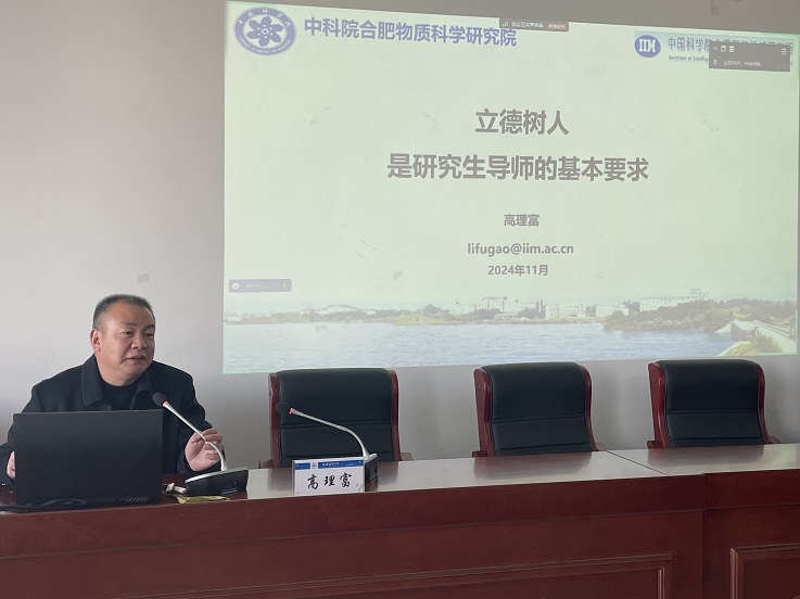 高理富研究员作了以“立德树人是研究生导师的基本要求”为主题的报告。他阐述了新形势下导师和学生关系的变化,分析了变化的原因,强调了要以联系的、发展的眼光来看待导师与学生的关系;明确了导师是研究生培养第一责任人的主体责任,明晰了研究生导师立德树人的基本要求和具体内容,探讨研究生导师行为指导原则以及如何建立正确的师生关系,为我院研究生导师做好立德树人指明方向。