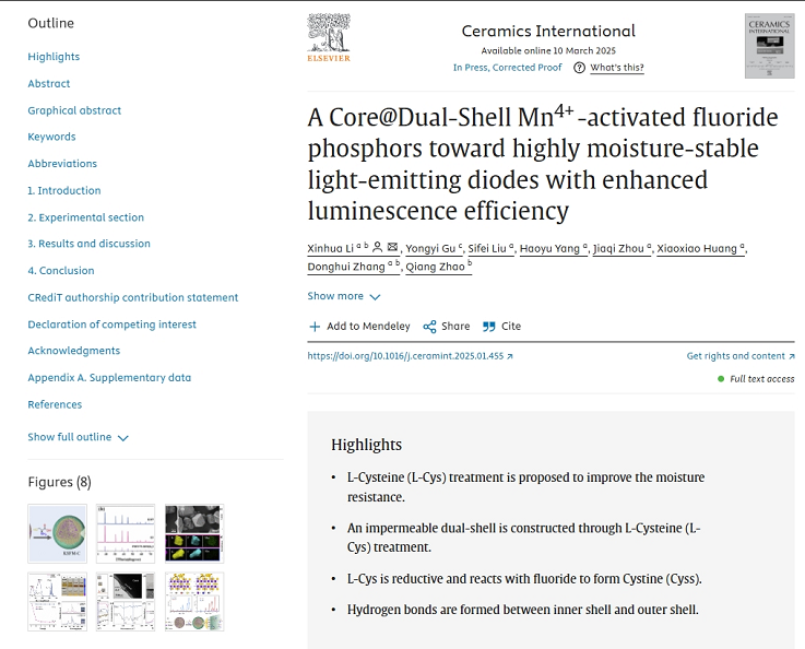 本网讯 近日,beat365在线唯一官网电子与信息工程学院2022级研究生谷永毅、数理学院2023级研究生刘思费以及本科生周佳琪等依托安徽省新型显示共性技术研究中心,在国际期刊《Ceramics International》(影响因子IF=5.1,中科院硅酸盐小类一区Top期刊)发表题为“A Core@Dual-Shell Mn4+-activated fluoride phosphors toward highly moisture-stable light-emitting diodes with enhanced luminescence efficiency”的研究论文,beat365在线唯一官网为第一完成单位。