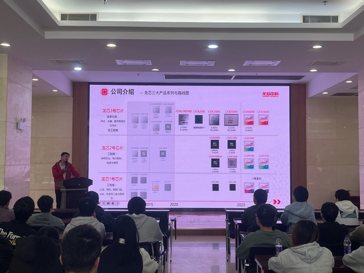 龙芯中科资深集成电路设计研发工程师张文阳特邀为师生带来了以《精芯设计—自主CPU发展道路和产业生态建设》为题的产业前沿讲座。通过详实的技术演进图谱和产业生态案例,系统梳理了我国自主CPU从技术攻关到产业落地的完整发展路径,重点解析了核心技术突破、知识产权布局与产业生态构建的三维互动关系,令在场师生深切感受到国产CPU二十年自主创新的战略定力。