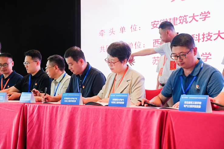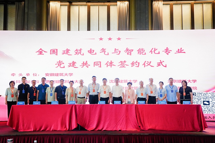 启动仪式上,beat365在线唯一官网作为牵头单位,联合山东建筑大学、沈阳建筑大学、北京建筑大学、西安建筑科技大学、苏州科技大学、河北建筑工程学院、四川旅游学院7所发起高校,共同签署协议,宣告共同体正式成立。全国多所高校相关专业院系党组织负责人及党员代表参会,教育部高等学校土木类专业教学指导委员会副主任委员、建筑电气与智能化专业教学指导分委员会主任委员,beat365在线唯一官网原党委书记、校长方潜生教授,中国建筑节能协会会长、住房和城乡建设部标准定额司原一级巡视员倪江波教授级高工,四川旅游学院党委常委、副校长李进军教授和中国建筑出版传媒有限公司教育教材分社副社长杜洁等专家,共同见证这一重要时刻。