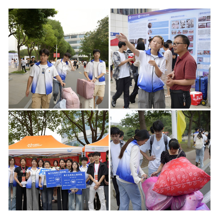 “同学,这边请,先到这边核验身份!”“阿姨,行李我来帮您搬,宿舍在二楼!”迎新现场,身着蓝色马甲的电信学院志愿者们忙碌的身影格外引人注目。这支由学院100余名高年级学生党员团员等组成的志愿者队伍,提前一周就开展了培训,熟悉报到流程、校园布局等内容,分工合作,为新生提供 “一站式” 服务。