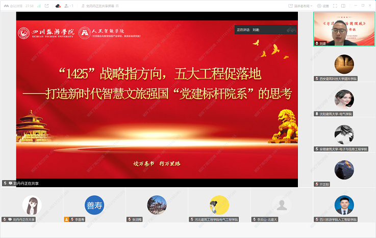 随后,四川旅游学院人工智能学院原党委书记刘建以“‘1425’战略指方向,五大工程促落地——打造新时代智慧文旅强国‘党建标杆院系’的思考”为题作主题报告。报告分享了学院将党建工作与学科发展、人才培养深度融合,以“1425”战略为引领,实施五大工程,着力打造党建标杆院系的生动实践与思考。