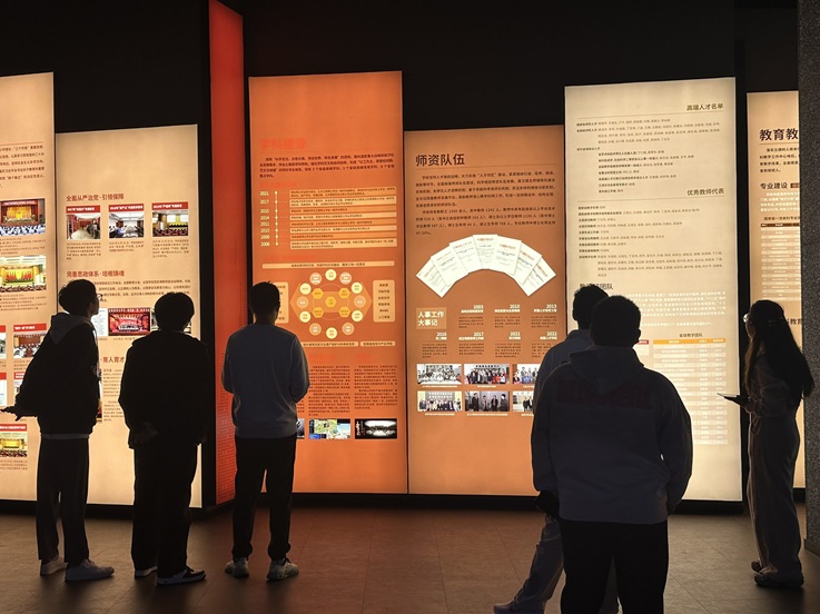 展区内陈列的早期校园平面图、泛黄的录取通知书等珍贵文物,让学生们仿佛穿越时空,直观感受到学校在艰难岁月中坚守教育初心的不易。国家级教学成果奖证书、国家级学科竞赛中的获奖奖杯、重大科研项目签约文件等展品,生动展现了学校在教学、科研、人才培养等方面的丰硕成果。