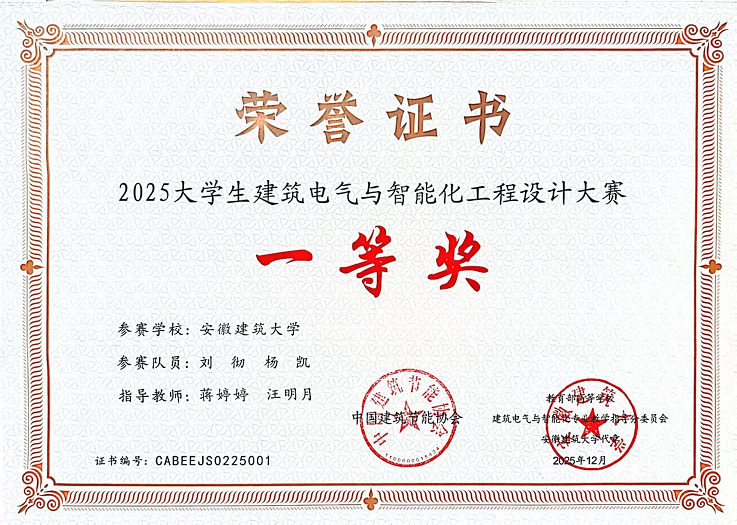 我院学子荣获“2025大学生建筑电气与智能化工程设计大赛”一等奖
