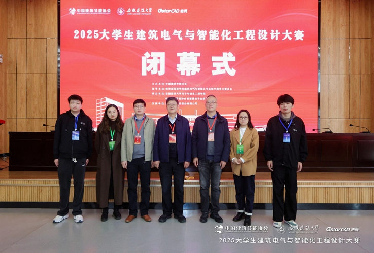 本网讯 2025年12月5-7日,“2025大学生建筑电气与智能化工程设计大赛”在beat365在线唯一官网隆重开幕。本次大赛由中国建筑节能协会主办,教育部高等学校建筑电气与智能化专业教学指导分委员会担任指导单位,beat365在线唯一官网电子与信息工程学院、中国建筑节能协会智慧建筑专业委员会联合承办,并得到了苏州浩辰软件股份有限公司的鼎力支持。来自全国33所高校的48支参赛队伍齐聚一堂,共同开启了一场以“智能建筑、绿色未来”为主题的科技竞技盛会。经过激烈角逐,我院蒋婷婷、汪明月老师指导的参赛队获得大赛一等奖,参赛队代表刘彻同学在闭幕式上进行了作品分享。