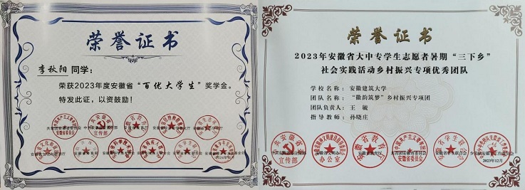 强化思想引领,深化实践育人。学院团委近年来屡获殊荣,先后荣获校“五四红旗”团委、“年度美育工作”优秀组织单位等十多项表彰。学院学子连续三年摘得安徽省“百优”大学生荣誉称号,同时荣获中国大学生自强之星及安徽省大学生自强之星等多项表彰。此外,学院积极依托社会实践与志愿服务等平台,引导学生在实践中增强历史使命感与社会公德意识。近年来,学院定期组织“学雷锋”系列志愿服务活动,组建实践团赴黄山、铜陵、宣城、六安及淮北等地开展暑期“三下乡”社会实践活动,并连续两年荣获全省暑期“三下乡”社会实践优秀团队称号。