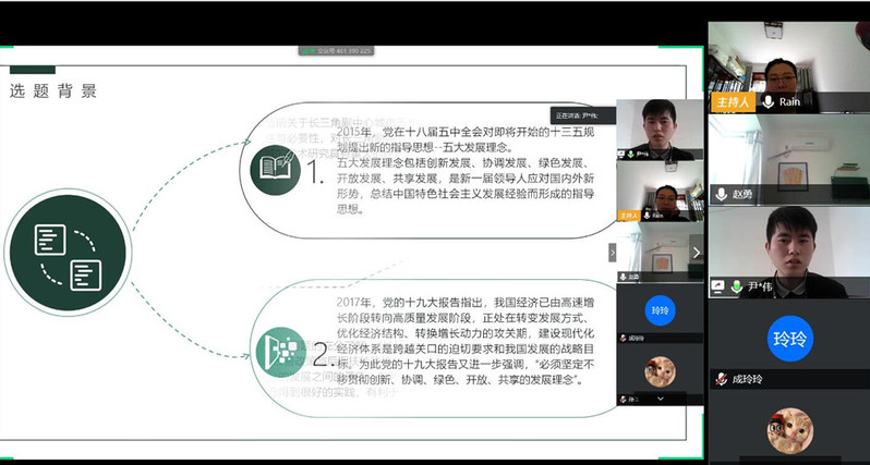 通过检查,答辩组认为同学们毕业论文(设计)总体进展顺利,大部分同学完成了初稿,疫情影响得到了较好克服。学院通过线上中期检查,不仅掌握了毕业论文(设计)的进展情况,而且有力督促了学生认真完成毕业论文,进而提升毕业论文(设计)质量,保证学生顺利毕业。(作者:储姣娇 陈雨;审稿:黄佳豪)