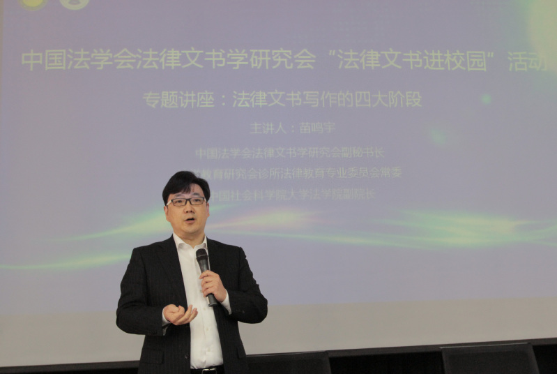 本网讯 12月25日,公共管理学院邀请中国法学会法律文书研究会副秘书长、中国社会科学院大学法学院副院长苗鸣宇开设以“法律文书写作的四大阶段”为题的“法律文书进校园”讲座。学院班子成员、法学系专业教师以及专业学生参加了讲座活动。