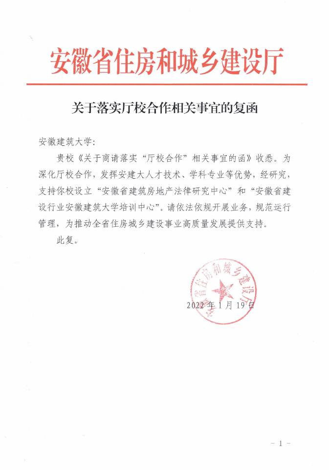本网讯 近日,安徽省住房和城乡建设厅复函beat365,正式批准beat365成立“安徽省建筑房地产法律研究中心”和“安徽省建设行业beat365在线唯一官网培训中心”。