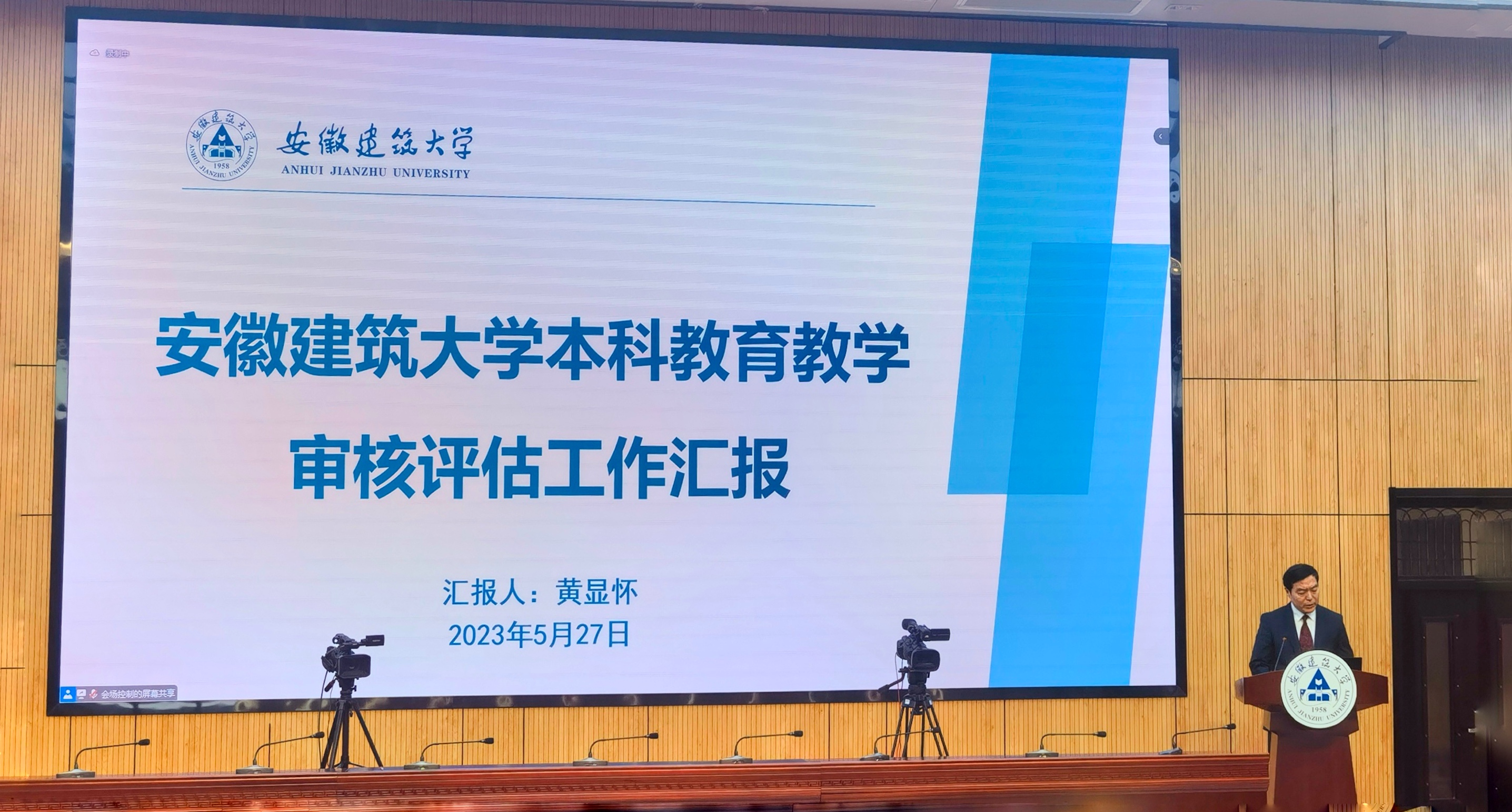 最后,校党委副书记、校长黄显怀代表学校作评估工作报告。围绕抓牢评估契机,构建“三全育人”新格局;聚焦内涵建设,赋能“评估结果”新价值;传承徽州文化,实施“特色培养”新模式等三个方面,他对学校办学特色、学科发展、专业建设、人才培养成效等方面作了进一步补充。他指出,办学六十五年来,在全校师生员工的共同努力下,学校先后通过教育部合格评价、教育部水平评估、教育部本科教学工作审核评估,每一次评估都为学校的跨越式发展提供了强力支撑,学校办学成就也实现了一次次突破性进展。学校将以本次审核评估为契机,深入推进本科教育教学综合改革,不断提高人才培养能力,为加快建成国内一流、特色鲜明的高水平建筑大学做出新的更大贡献!(图/文:张玉波 蔡弘;审稿:马巍)
