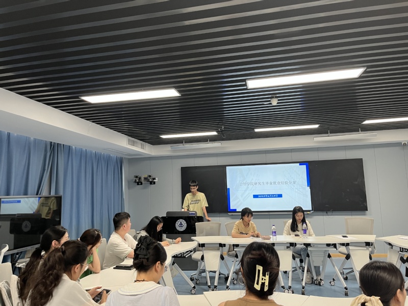 公共管理学院毕业生张宁同志进行就业心得分享,她从简历制作、求职渠道、职业选择、应试技巧等多个方面传授了自己的宝贵经验。最后,大家一起进行了互动交流,活动现场气氛热烈。