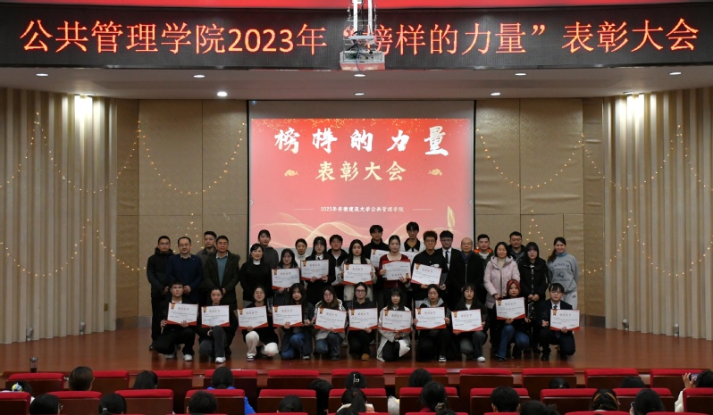 本网讯 为落实立德树人的根本任务,深化“五育并举”,凝聚榜样力量,引领学风建设,12月26日,公共管理学院2023年“榜样的力量”表彰大会在图书馆二楼报告厅隆重举行。学院领导班子出席大会,全体辅导员、部分教师代表、各年级200余名学生代表参加大会。