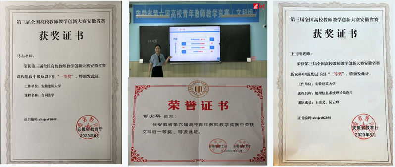 重竞赛,贡献新智慧,竞赛获奖再创佳绩。2023年,学院教师和学生竞赛获奖“质”和“量”实现双突破。学院通过“示范化听课、集中化研课、仿真化练课、精细化磨课、常态化赛课”全方位提升教师教学能力,教师获安徽省第六届青教赛一等奖1名,第三届高校教师教学创新大赛安徽赛区一等奖1名、二等奖1名,第三届学校课程思政教学比赛一等奖2名、二等奖1名、三等奖1名。创新构建“1+14+N”工作体系,优化政策、强化激励、细化流程,学科竞赛取得重要突破,其中研究生获安徽省大学生课外学术科技作品竞赛一等奖等省部级二等奖7项、三等奖1项。