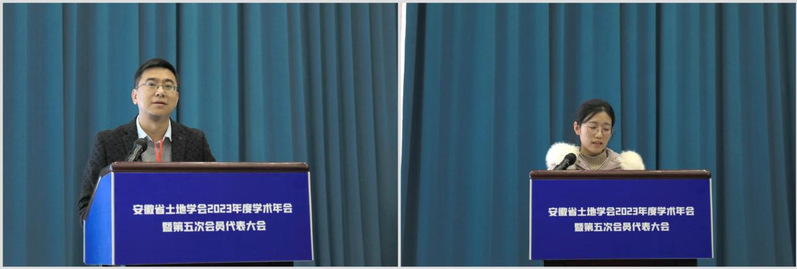 学术论文交流由安徽省土地学会秘书长、安徽省国土空间规划研究院院长刘洋兵主持。公管学院王秉义、安徽省发改委孙月阳、安徽省国土空间规划研究院苏娟、公管学院研究生刘璐瑶、安徽农业大学余波平分别做学术发言。