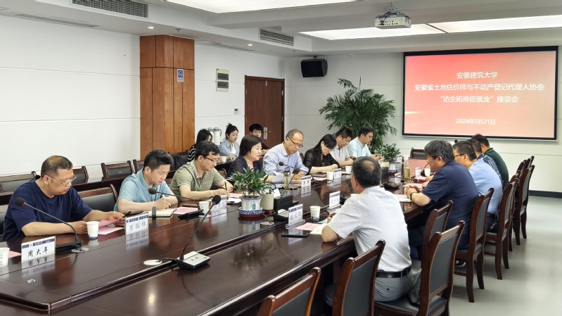 本网讯 5月21日,校党委常委、副校长李早主持访企拓岗座谈会,安徽省土地估价师与不动产登记代理人协会携五家会员单位来校交流,就业工作处、公共管理学院、建筑与规划学院、环境与能源工程学院、土木工程学院等单位负责人参加座谈。