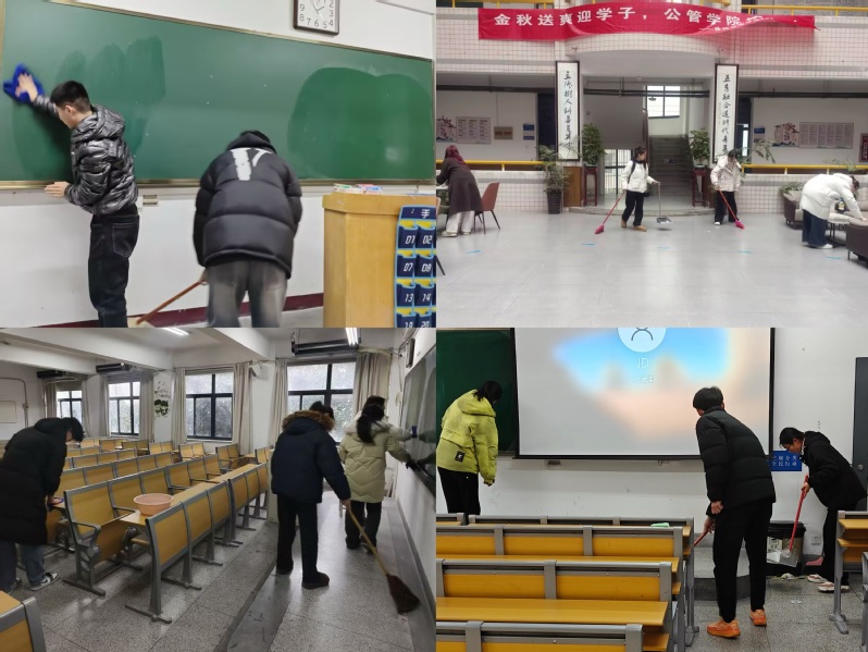 活动开始前,辅导员老师对北校区教学楼所有教室进行任务划分和学生分组,带领大家逐一进行卫生清洁,并根据制定的卫生评分标准进行检查验收。活动过程中,同学们拿起扫帚、抹布等工具,积极投入到教室环境的整治和美化中。他们捡拾垃圾、清理杂物,不怕脏、不喊累,对教室内的墙面污点、桌椅灰尘、讲台黑板以及卫生死角进行仔细清扫。大家分工明确、团结协作,用实际行动践行无私奉献的雷锋精神,为同学们创造干净整洁的学习环境的同时,也真切体会到了学校后勤叔叔、阿姨们劳动的辛苦。