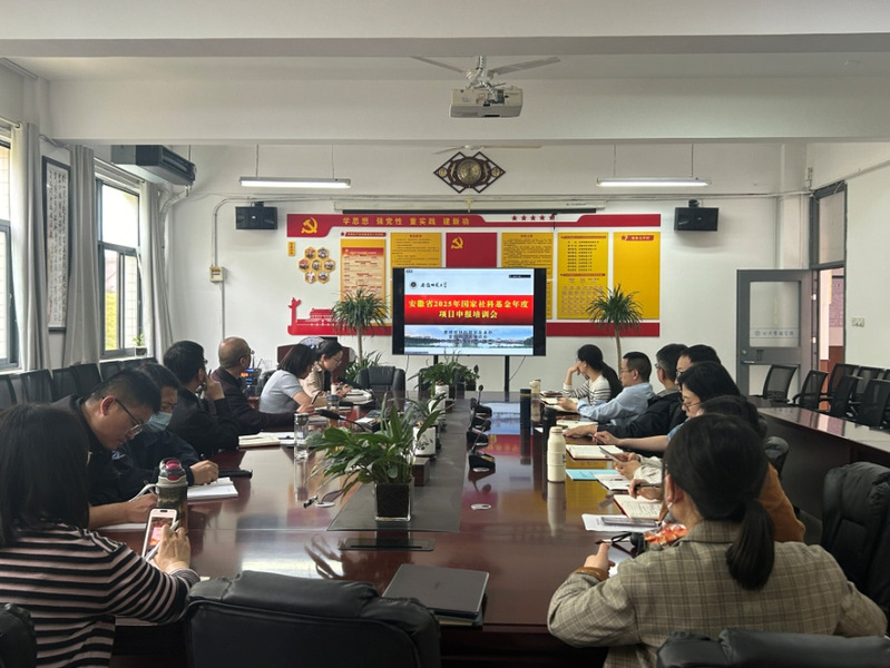 本网讯 4月16日下午,公共管理学院在建树楼F209会议室集中观看了“安徽省2025年国家社科基金年度项目申报培训会”,安徽师范大学徐彬教授、戴中朝教授进行线上指导,申报国家社会科学基金和教育部基金的老师参会。