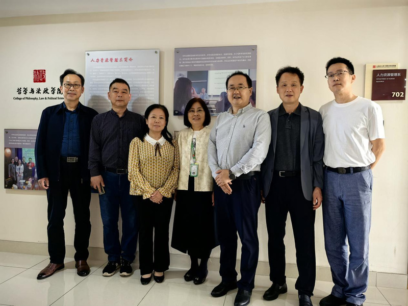 本网讯 2025年5月9日下午,公管学院副院长连瑞瑞与人力资源管理教学创新团队陈松林教授、赵勇教授、范海洲教授赴上海师范大学哲学与法政学院,调研交流人力资源管理专业办学经验,上海师范大学人力资源管理专业建设负责人李成彦教授、骨干教师倪宁教授参与座谈。