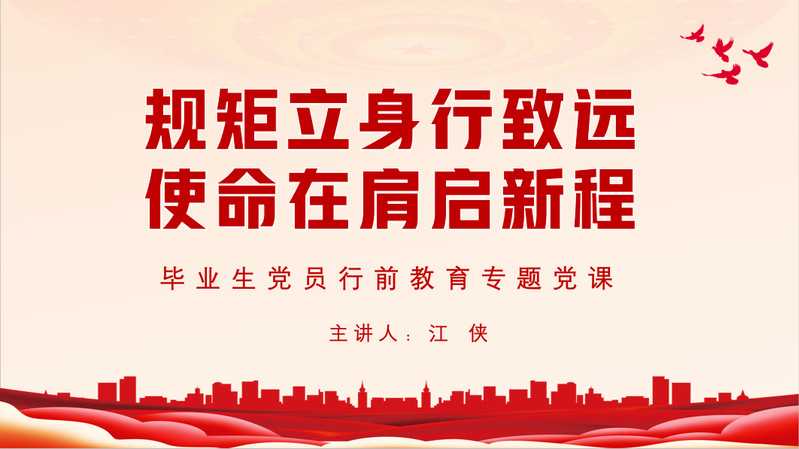 大会伊始,江侠以“规矩立身行致远,使命在肩启新程”为题,为全体毕业生党员讲授离校前的专题党课。党课聚焦党的纪律教育和廉洁从业要求、毕业安全提醒,引导毕业生党员深刻认识严守纪律规矩是共产党员的终身课题。她结合毕业生即将步入社会的实际,着重强调了在未来的工作和生活中要时刻牢记初心使命,永葆政治本色,在新的岗位上奋勇拼搏,砥砺前行。