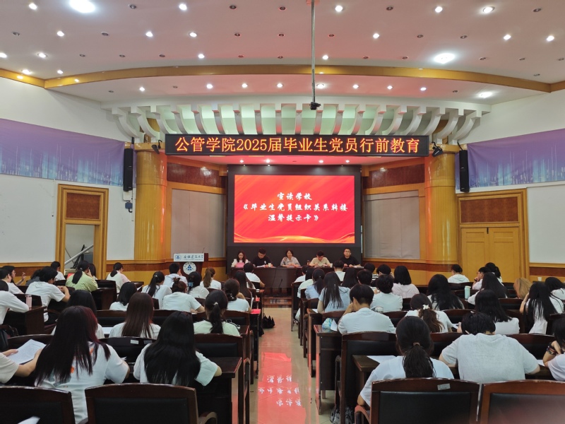 本网讯 为加强毕业生党员理想信念教育,引导其牢记入党初心、勇担时代使命,近日,公管学院在建树楼三楼报告厅举行2025届毕业生党员教育大会。活动通过一堂专题党课教育、一次初心分享、一次档案转接指导、一次重温入党誓词,为全体毕业生党员上好离校前的“最后一堂政治课”。会议由学院党委副书记江侠主持。