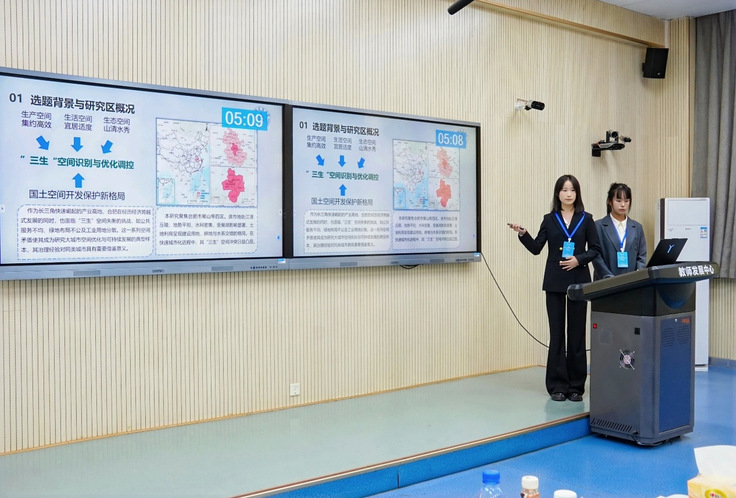 由王玉纯、鲁帆两位老师指导,王贝贝、江锦燕、董福严、刘婉怡、佘子滢等同学完成的参赛作品《三生有“径”,智绘其“精”:多源数据下“三生”空间识别与优化调控——以合肥市为例》,聚焦城市“生产-生活-生态”空间协同发展,融合多源地理数据与机器学习算法,提出了具有前瞻性的空间优化方案,体现出强烈的现实关怀与鲜明的数智特色。