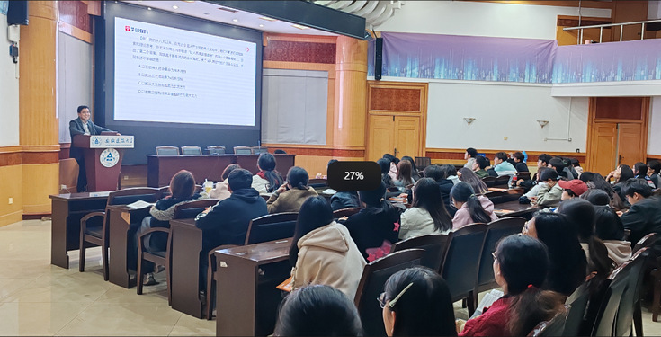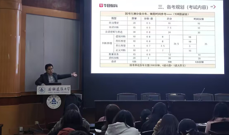 本网讯 为进一步做好“共青团促进大学生就业行动”工作,帮助学生科学、高效备战国家公务员考试,10月21日,校团委邀请了行业培训专家汪周武老师,在金寨路校区组织开展了公务员备考公益辅导讲座。公管学院、经管学院120余名学生参加了讲座。