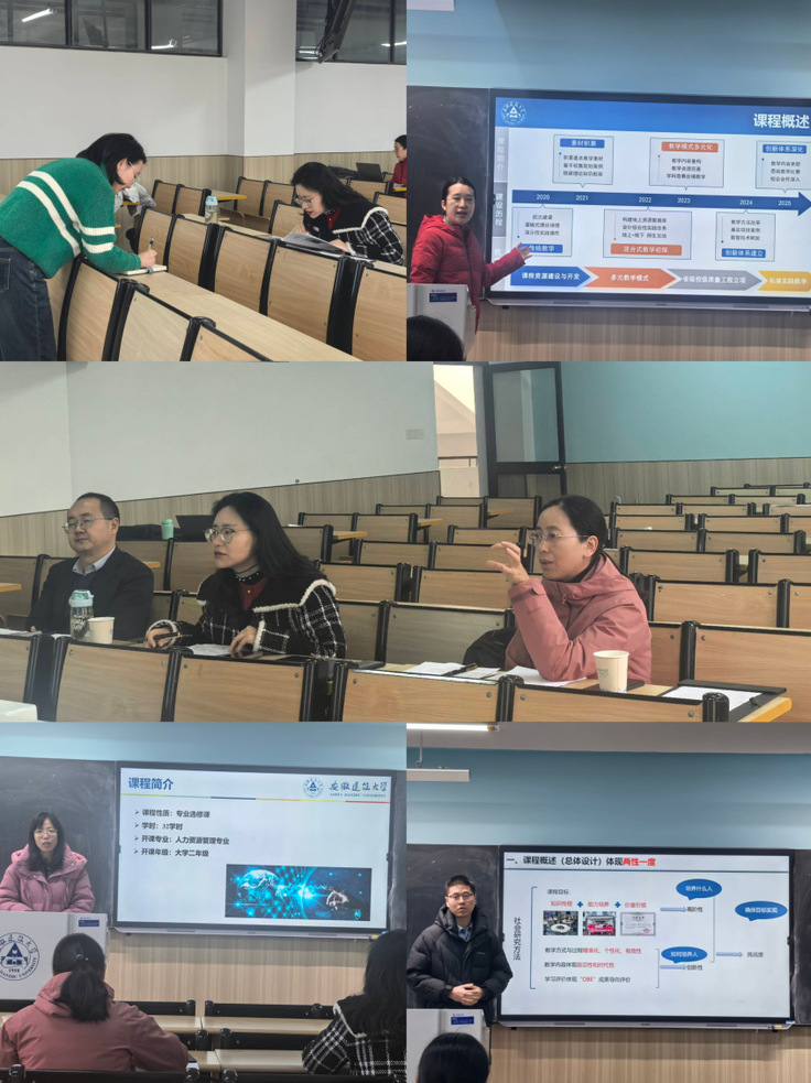 本网讯  为深化教育教学改革,夯实教师教学核心能力,助力优质课程打磨,承接此前学院教学创新比赛成果,12月31日上午,公管学院在金寨路校区智慧教室F512如期开展学校教学创新比赛赛前磨课活动。本次活动特别全国高校教师教学创新大赛二等奖获得者张媛、胡安琪两位老师担任点评嘉宾,即将代表公管学院参加比赛的王鹏、郑敏、赵斌斌、朱永甜、张童及其他相关老师全程参与,副院长连瑞瑞主持活动