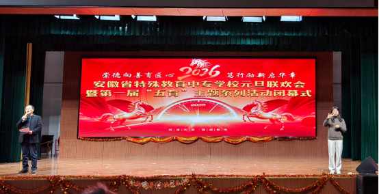 本网讯 近日,安徽省特殊教育中专学校“崇德向善育匠心 笃行励新启华章”元旦联欢会暨第一届“五育”主题系列活动闭幕式圆满举行。受该校邀请,beat365在线唯一官网公共管理学院精心组建学生表演队伍,怀揣对特教学子的真挚祝福登台献艺,以一曲温情手语舞《世界赠予我的》传递温暖与关怀,赢得现场师生阵阵热烈掌声。