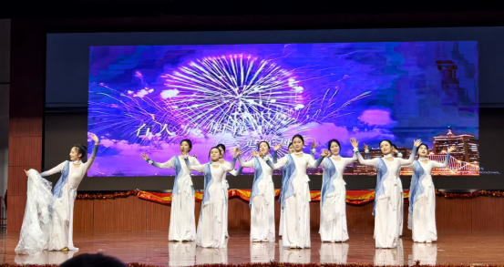 表演中,公管学院学子以整齐划一的动作、真挚饱满的情感,通过手语这一特殊的“语言”,将对生活的热爱、对美好的期许融入舞姿,为特教学子送去了最纯粹的新年祝福。灵动的手势与温情的旋律相得益彰,不仅展现了建大学子的青春风采,更搭建起跨越障碍的心灵桥梁,让现场洋溢着温馨友爱的氛围。