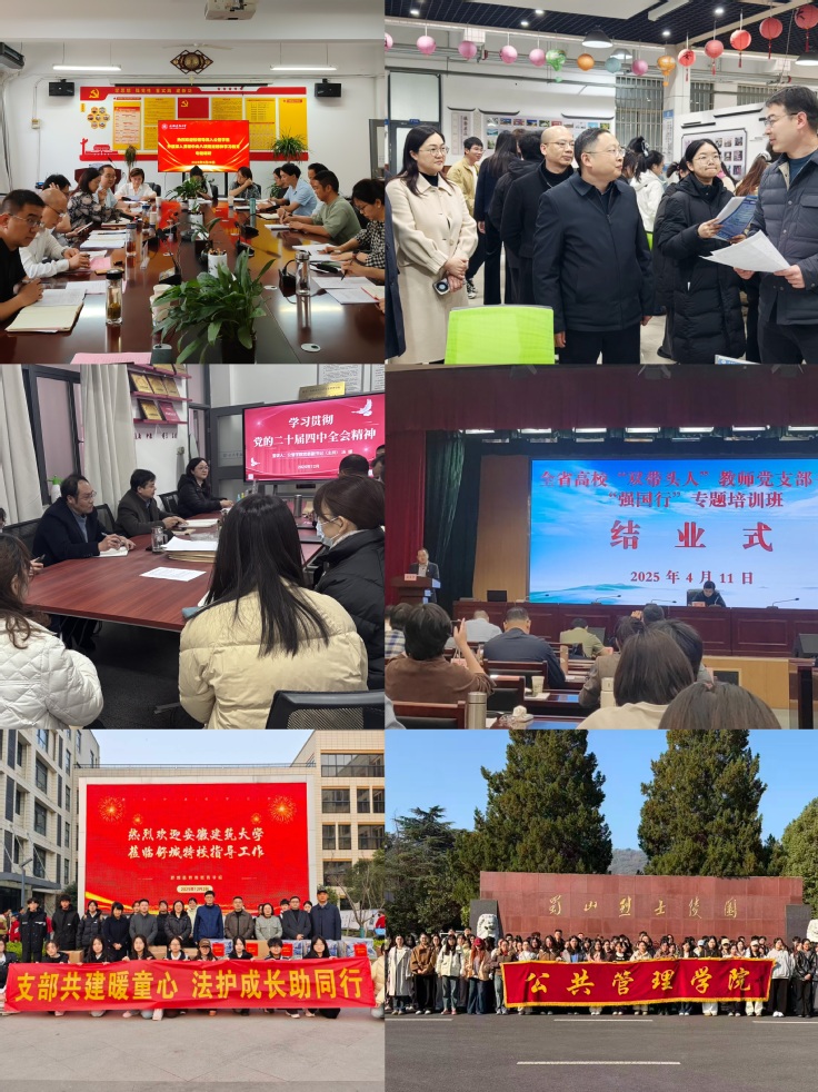理论武装深耕细作求实效。“十四五”期间,学院党委始终坚持把政治建设摆在首位,着力构建具有学院特色的党建工作体系,在品牌建设上,深耕“党建+学科”活动模式,常态化开展“红色管理”“红色法治”系列活动,党建理论研究成果丰硕,彰显学科特色与理论深度;在合作共建上,主动对接行业与地方资源,与省住建厅法规处、省特教中专学校等单位签订共建协议,加入“常青树”扶残助残党建联盟,开展全国助残日活动,通过文艺汇演、职业教育成果参观、《中华人民共和国民法典》专题普法等活动,实现“组织共建、服务共推”;在党日活动上,推进党日活动与工作、育人实践、社会服务深度融合,组织师生党员赴凤阳小岗村、舒茶镇、长丰县朱巷镇等地开展主题党日,将劳动实践与红色教育有机融合,形成“理论+实践+服务”的特色党建路径,彰显公管学科优势与社会担当。
