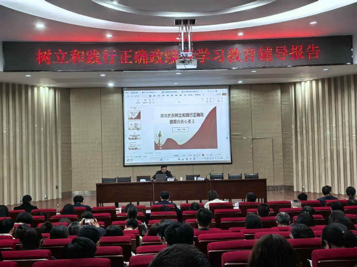 专家辅导赋能深化认知。读书班特邀安徽大学马克思主义学院李明教授作专题辅导报告。李明教授以“深刻把握树立和践行正确政绩观的核心要义”为主题,深刻阐释了开展树立和践行正确政绩观学习教育的重要意义,精准解读了正确政绩观的本质要求与丰富内涵,深入剖析了筑牢党性根基、践行正确政绩观的内在逻辑。为全院教师及学生党员代表带来一场深刻的思想党课,进一步明晰了树立和践行正确政绩观的方向与方法。