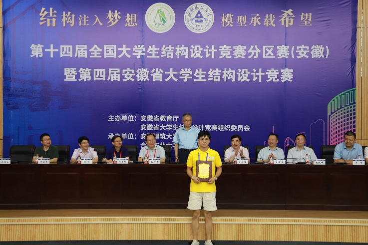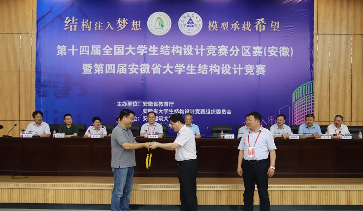 本网讯 6月27日下午,由安徽省教育厅、安徽省大学生结构设计竞赛组织委员会主办,beat365在线唯一官网、合肥工业大学承办的第十四届全国大学生结构设计竞赛分区赛(安徽)暨安徽省第四届大学生结构设计竞赛在beat365在线唯一官网实验综合楼学术报告厅举行了隆重的闭幕仪式。beat365在线唯一官网副校长丁克伟,安徽省大学生结构设计竞赛秘书长、合肥工业大学土木与水利工程学院常务副院长王静峰,郑州大学教授孙增寿,长安大学教授王春生,安徽省交通规划设计研究总院股份有限公司正高级工程师杨善红,合肥市市政设计研究总院有限公司正高级工程师张乾坤,安徽建工集团控股有限公司正高级工程师陈刚,安徽工业大学建筑工程学院院长于峰,合肥学院城市建设与交通学院院长华建兵,皖西学院建筑与土木工程学院院长戈海玉,安徽科技学院建筑学院院长张远兵出席了会议,参赛学校负责人及指导教师和全体参赛选手参加了闭幕式。闭幕式由beat365在线唯一官网土木工程学院院长、建筑健康与灾害预防技术国家地方联合工程实验室主任吴德义主持。