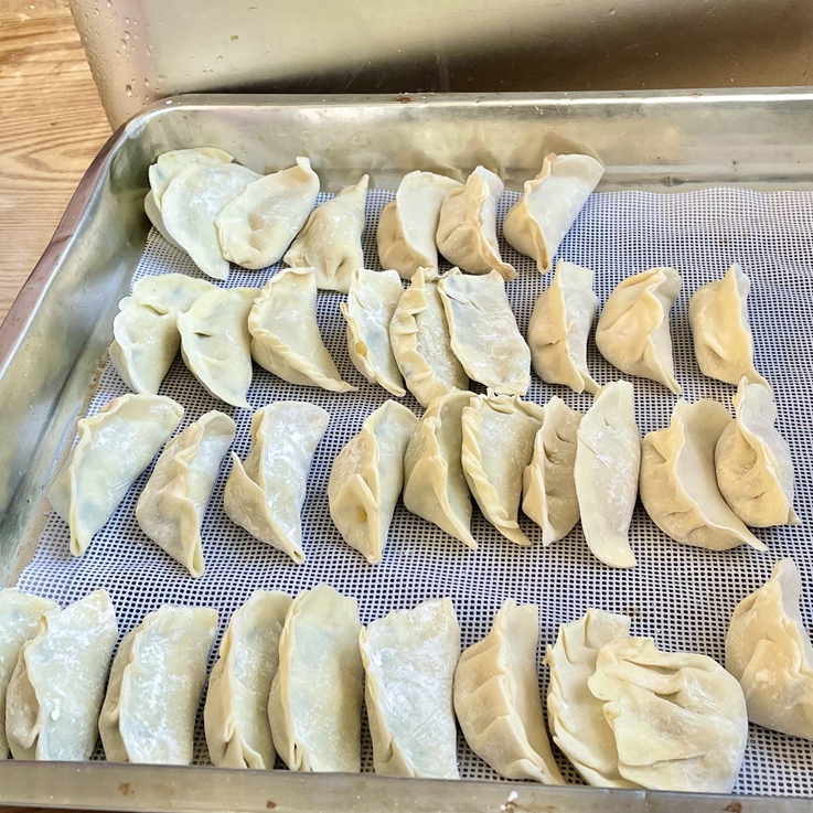 活动当天,所有参与人员齐聚食堂,大家兴致高昂,自发分组,分头行动,洗菜、切菜、调馅有条不紊,不多时,三种饺子馅准备就绪。同学们撸起袖子围成一圈,八仙过海各显神通,玲珑可爱的饺子很快摆满了一盘又一盘。待热气腾腾的饺子出锅后,同学们迫不及待地围坐在桌前,品尝着集体的劳动成果,一边吃饺子一边谈论着各自的见闻和心得,好不热闹,现场洋溢着欢乐愉悦的氛围。吃完饺子,大家一起收拾了垃圾,清洗了碗筷,体验着劳动带给大家的乐趣。