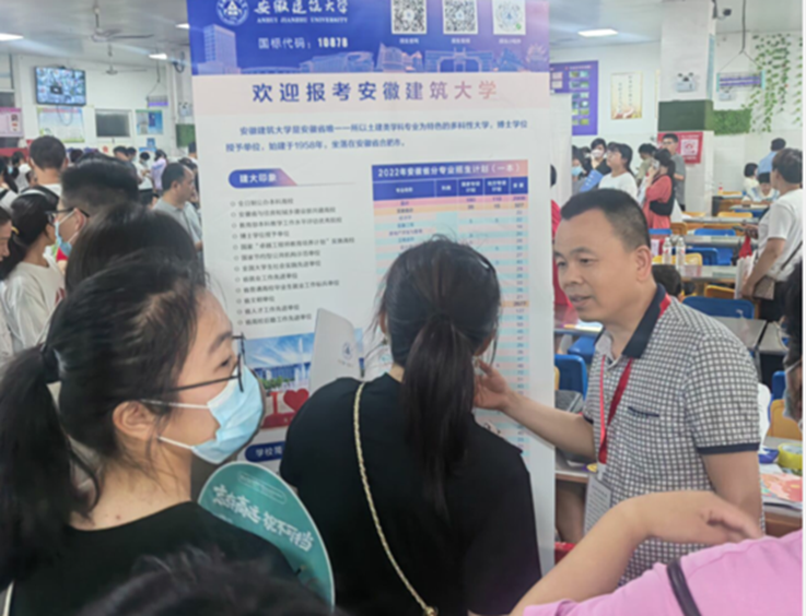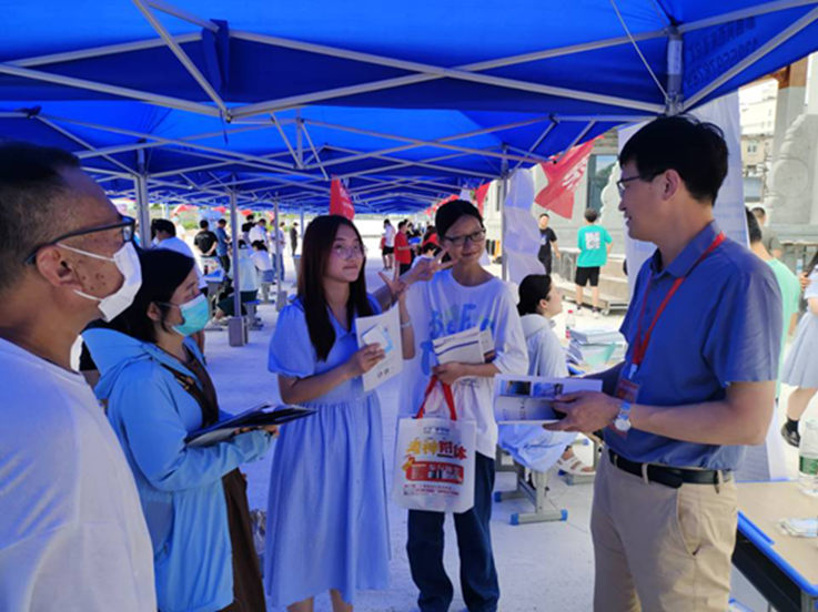 招生宣传工作人员现场发放招生简章,向前来咨询的考生和家长详细介绍学校办学历史、特色优势、学科专业建设、师资力量、科研水平等情况,现场解答招生政策、就业前景、转专业规定、考研出国情况等,宣传现场异常火爆。