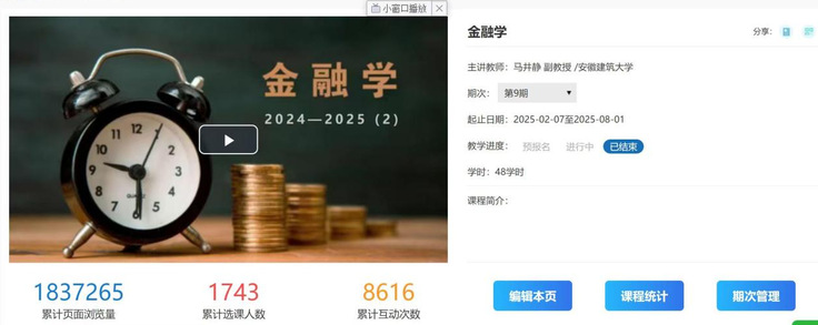 课程介绍:《金融学》是经济与管理类专业的学科基础课程。课程以货币、金融机构和金融市场为主线,研究现代金融活动的一般规律。课程系统讲述金融学的基础知识、基本理论与基本运行规律,从货币入手,进而阐释信用、利息、利率、汇率、金融市场、金融机构、货币的供求以及货币政策等基本知识与原理,并阐述金融在经济发展中的作用及金融与经济的互动关系。