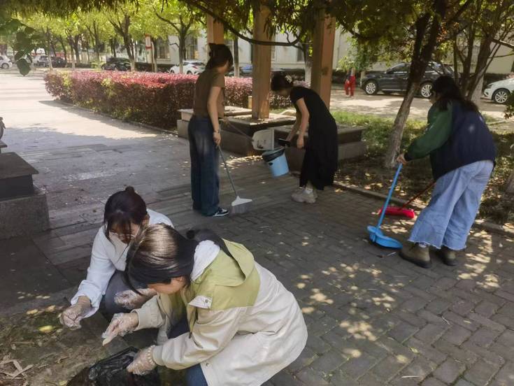 活动负责人带领同学们对垃圾分类背景、垃圾分类的意义、垃圾分类的标志、垃圾分类的操作流程等进行了交流讨论。随后,同学们运用垃圾分类相关知识,在食堂、F楼前、C楼前以及操场进行分类投放实践活动。同学们体验到劳动独有的魅力,切身感受到劳动最光荣。
