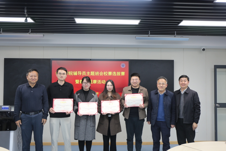 本网讯 为深入学习贯彻习近平新时代中国特色社会主义思想和党的二十届二中全会精神,落细落实习近平总书记关于教育的重要论述和指示批示精神,着力打造政治素质过硬、工作作风优良、业务能力精湛、育人水平高超的辅导员队伍,推动“时代新人铸魂工程”落地生根,3月20日,经管学院在建树楼F523教室举办辅导员主题班会校赛选拔赛暨教学观摩活动。比赛邀请了学校党委宣传部、统战部、学生工作部、国有资产管理处、审计处主要领导和两位校友担任评委。学院党政班子、全体辅导员和学生代表参加了现场观摩。