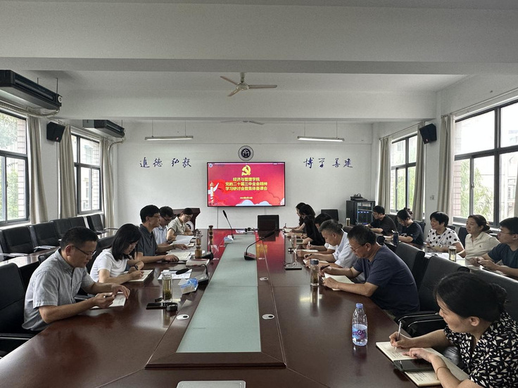 本网讯 为深入学习宣传贯彻党的二十届三中全会精神,深刻领会习近平总书记关于全面深化改革的一系列新思想、新观点、新论断,扎实做好全会精神集中宣讲工作,切实提升宣讲实效,9月14日上午,经管学院开展党的二十届三中全会精神学习研讨会暨师生宣讲团集体备课活动。学院党政领导班子成员、师生党支部书记、宣讲团成员参加会议,会议由经管学院党委书记陈国中主持。