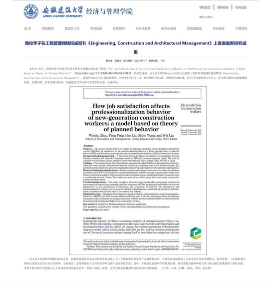 一是打造特色融合育人模式。学院党委坚持走特色发展之路,围绕学院特色品牌活动和社团,积极培育大学生创新创业教育,构建“1+3+N”运行体系。近年来,学院学子在“互联网+”大学生创新创业大赛、学科专业竞赛和创新创业项目共获奖160余项,其中国家级奖60余项。二是学科专业建设成效显著。2024年6月工程管理专业顺利通过专业评估(认证),合格有效期为6年。完成数字经济专业硕士授权点申报工作并获批,完成经济学本科专业更名数字经济的申报工作。依托学校大土建学科优势,搭建工程管理、房地产市场分析、供应链管理、区域经济、大数据分析五个方向的高水平科研团队,重点开展建筑经济与管理、绿色建筑与可持续发展等领域研究,建筑经济管理研究特色鲜明。三是社会影响力稳步提升。学院党委持续彰显办学特色,将产学研成果转化为学生实践教学内容,科研反哺教学能力显著增强。主动承担住建部指定课题《安徽省城镇自建房安全管理现状及对策研究》。承担《问题楼盘防范和化解机制研究》课题,为促进我国房地产市场平稳健康发展做出贡献。编写安徽省“十四五”建筑业、房地产业发展等系列规划8个,主持编写安徽省标准定额7个。