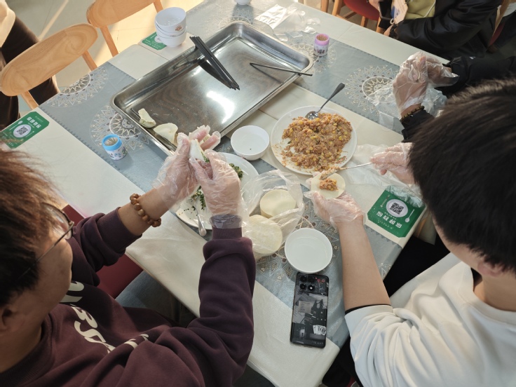 活动当天,经管学院易班工作站的成员们早早地来到了活动现场,开始了紧张而有序的准备工作。他们分工明确,一部分人负责和面、擀皮,另一部分人则负责调馅、包饺子。在劳动的过程中,大家不仅锻炼了动手能力,还深刻体会到了团队合作的重要性。随着一个个饱满的饺子在大家的巧手中诞生,活动也进入了高潮。易班工作站成员们将煮好的饺子端到了考研学子面前,为他们送去了冬至的温暖和祝福。