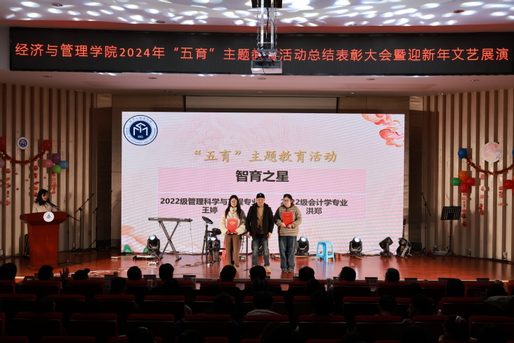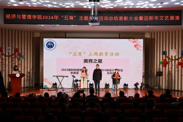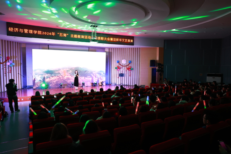 本网讯 为贯彻立德树人的根本任务,持续深入推进“五育融合”的育人模式,营造高品质的校园文化环境。12月31日,经管学院在金寨路校区图书馆报告厅举办“五育”主题教育活动总结表彰大会暨迎新年文艺展演。学校相关部门领导、学院领导班子、教师代表、校友代表亲临现场,与250余名学生代表一同共享盛会。此外,1500多名在校生和各届校友通过学院官方抖音号观看了活动直播。
