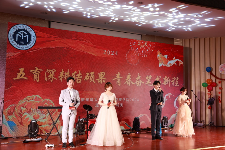 迎新年文艺展演在平转立乐队开场歌曲串烧中进入高潮。本次展演内容丰富,形式多样,涵盖了歌曲、舞蹈、小品、快板、演讲等多种表演形式,旨在展示学院师生在过去一年所取得的辉煌成就,表达对新年的美好祝愿。《易冷烟花乱,姬别霸王叹》和《舞蹈串烧》展现出不同舞蹈艺术的魅力,独唱《光年之外》《至少还有你》体现了流行文化艺术的风采,快板《武松打店》更是以独特的表演形式带大家体验丰富的故事情节,既领略到传统曲艺快板的魅力,又重温经典故事,感受传统文化的深厚内涵。《学习的诱惑》通过独特的配音形式呈现学习生活相关的故事,让原本略显枯燥的日常琐碎变得妙趣横生。