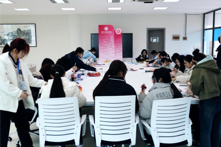 本网讯 为丰富校园文化生活,展现女生的创意与风采。3月19日,经管学院以经帼巧手,润心育美为主题,在建树楼525活动室举办DIY手工制作活动。